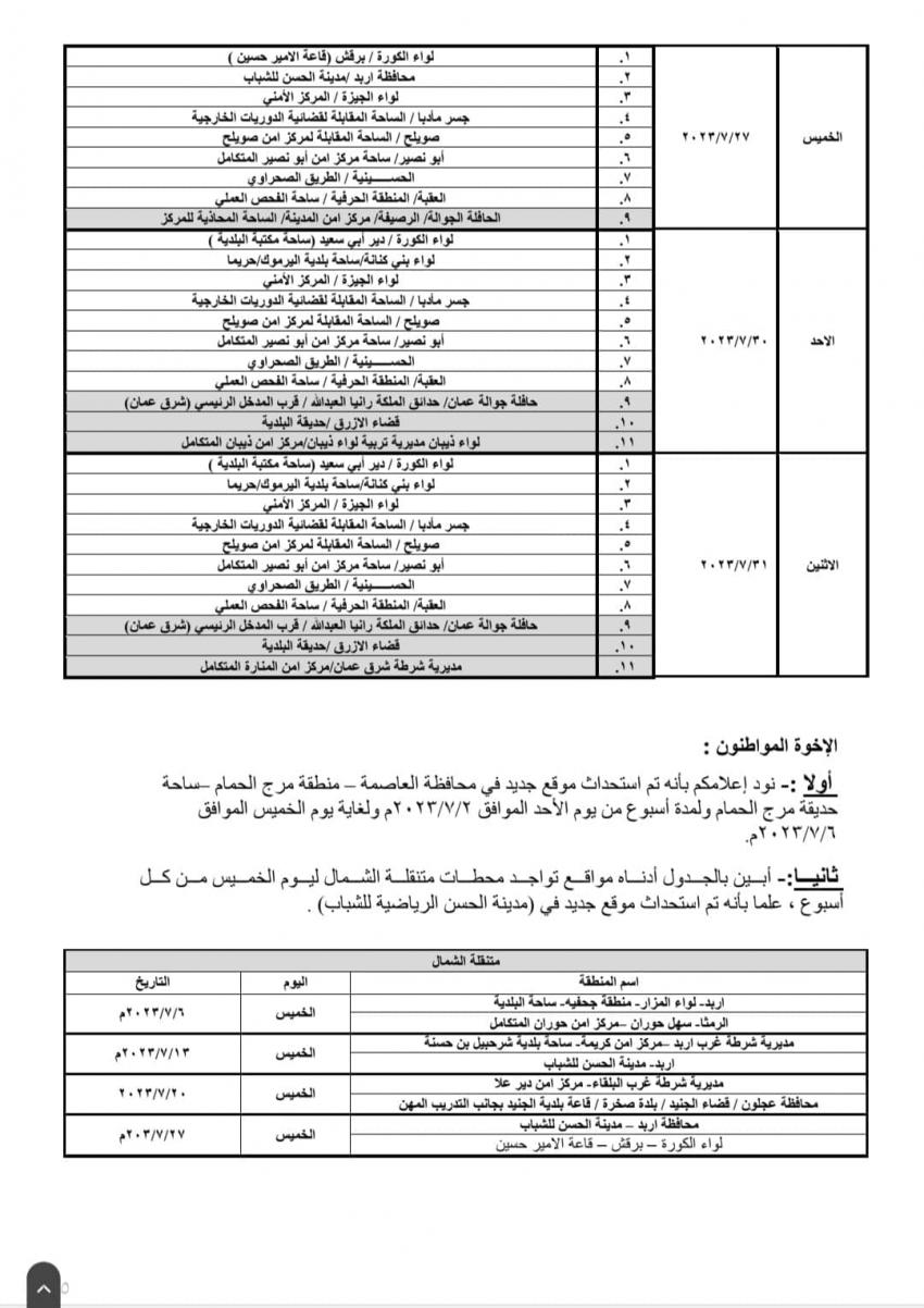 وكالة الناس – أعلنت إدارة ترخيص السواقين والمركبات عن مواعيد العمل بجولات الترخيص المتنقل ضمن المبادرة الابتكارية (بنوصلك) خلال شهر تموز الحالي.