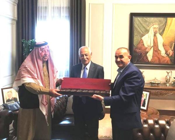وكالة الناس – التقى رئيس الديوان الملكي الهاشمي العامر يوسف العيسوي برئيس الجمعية الاردنية للمحافظة على التراث السيد احمد الوشاح “ابو زيد” والسيد امين هاشم عربيات مؤسس ومدير فرقة السلط اصالة وتراث.