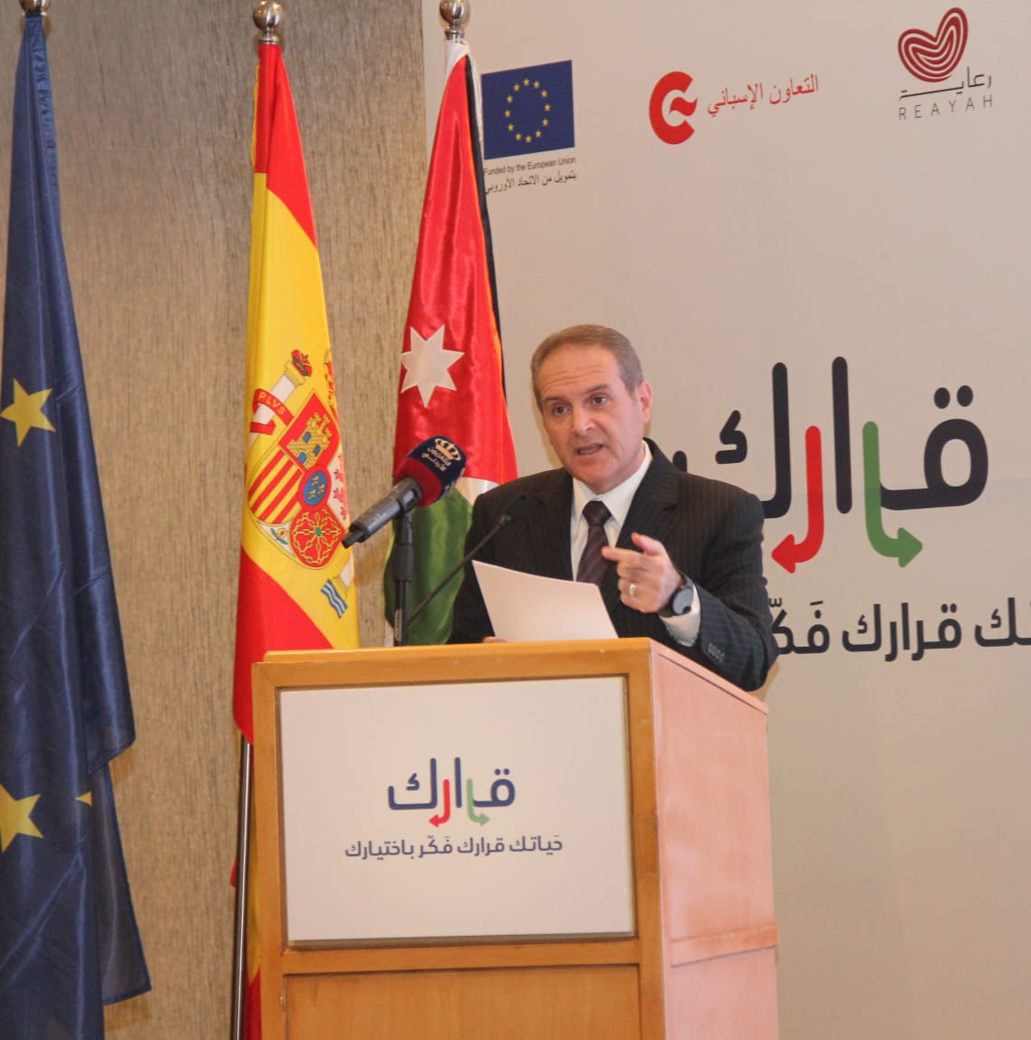 من جهته أكد سفير المملكة الاسبانية في الأردن، السيد ميغيل دي لوكاس على أهمية وجود سلطات صحية في الأردن قائدة للمبادرات التي تهدف إلى الحد من عوامل الخطر الأولية المرتبطة بالأمراض المزمنة وغير السارية والتي تشمل التثقيف والتوعية بين فئات سكانية محددة وعامة الناس.