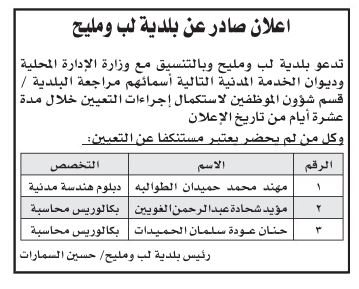 كما دعت مؤسسات رسمية عدداً من المرشحين لاستكمال إجراءات التعيين.