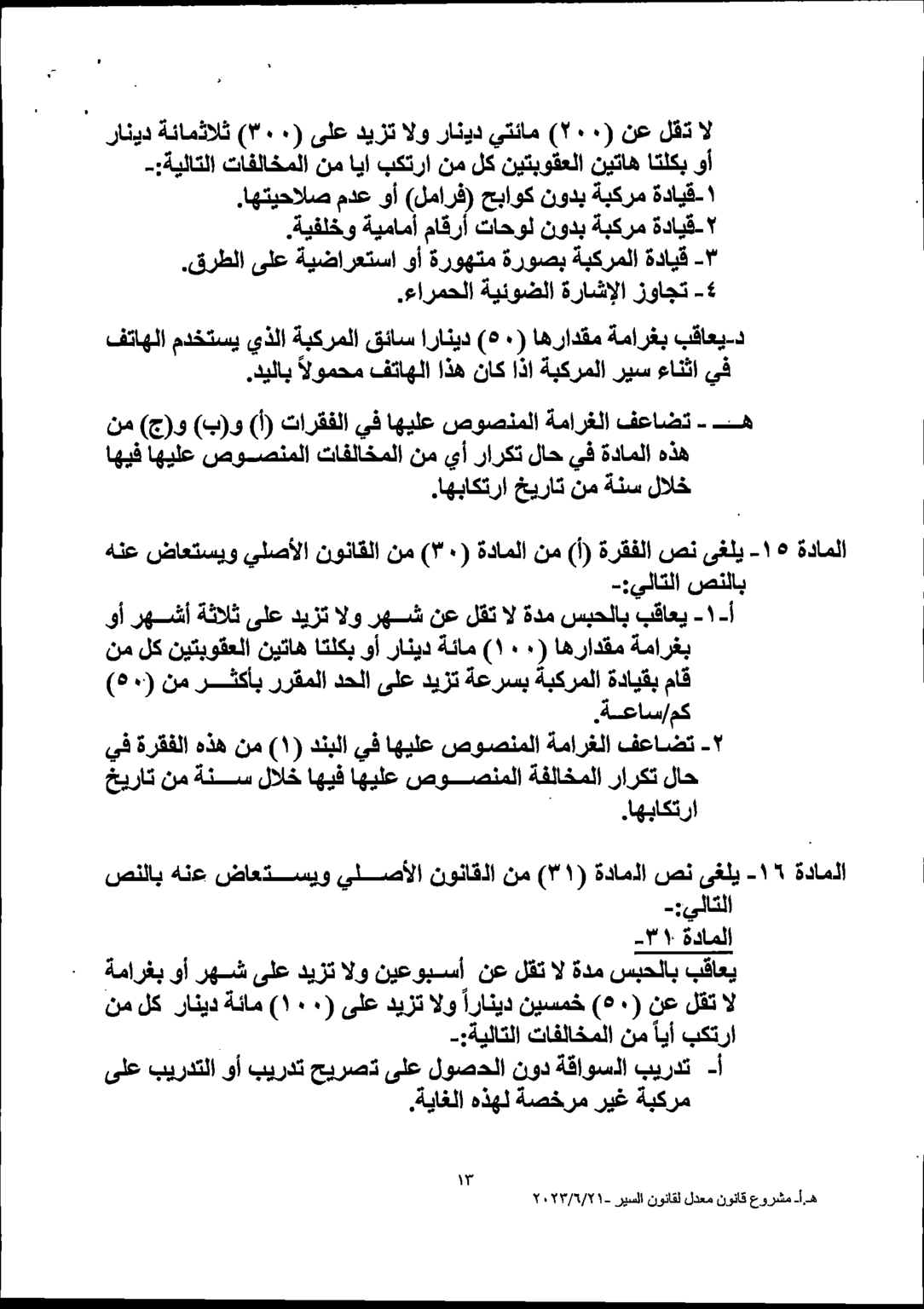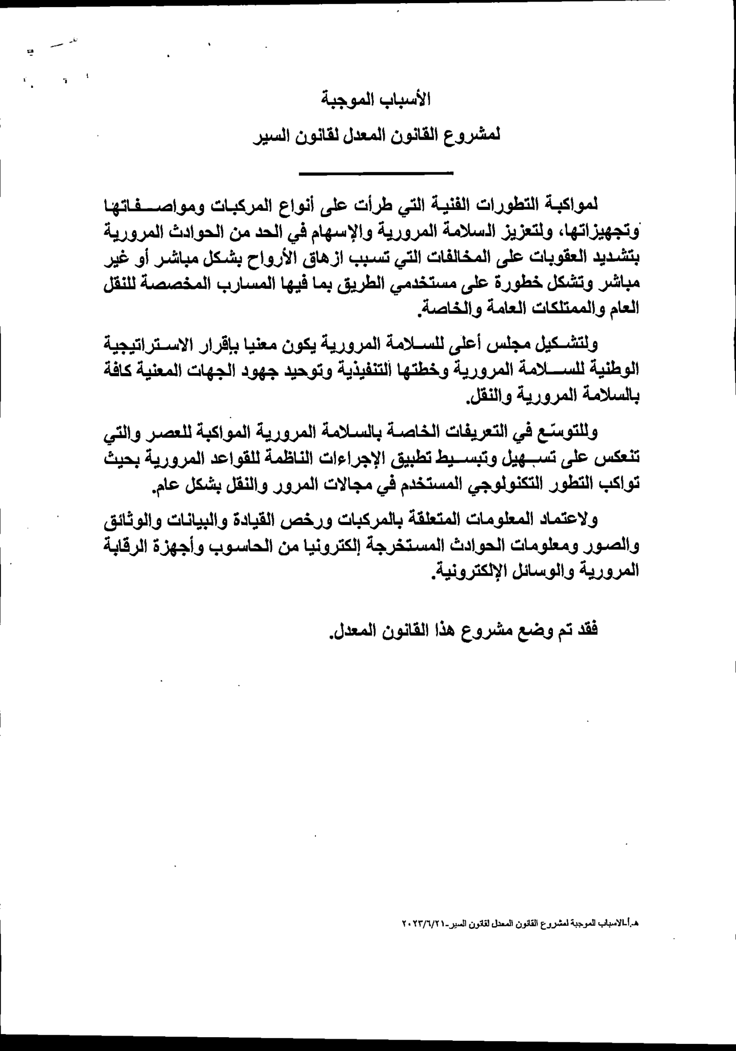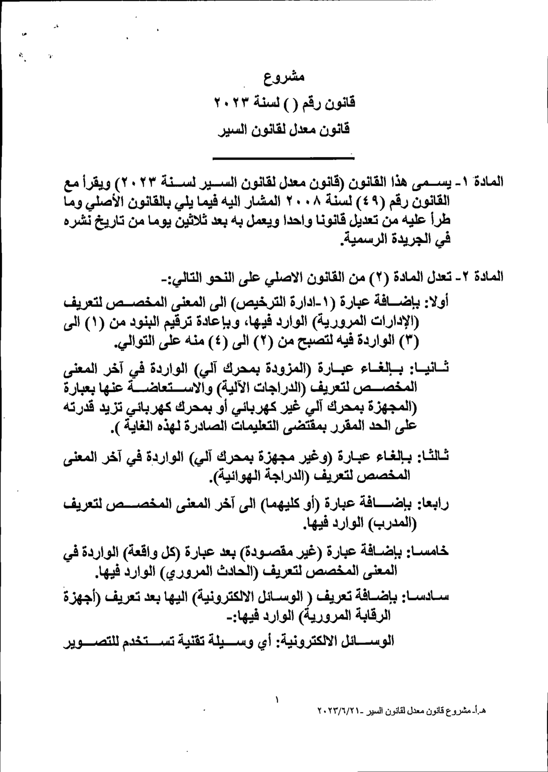 وكالة الناس – يشرع مجلس النواب بمناقشة القانون المعدل لقانون السير لسنة 2023 خلال الدورة الاستثنائية المقبلة والتي ستبدأ أعمالها يوم الأحد.