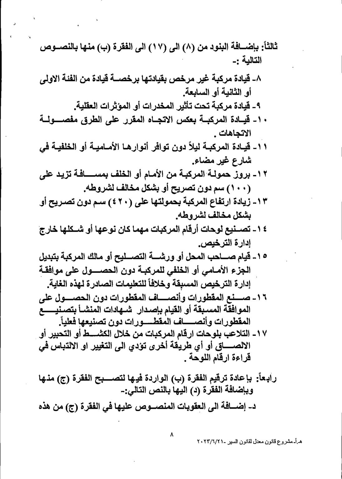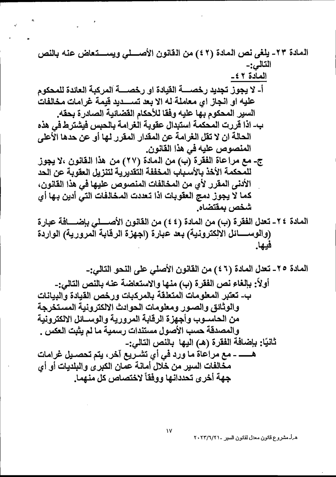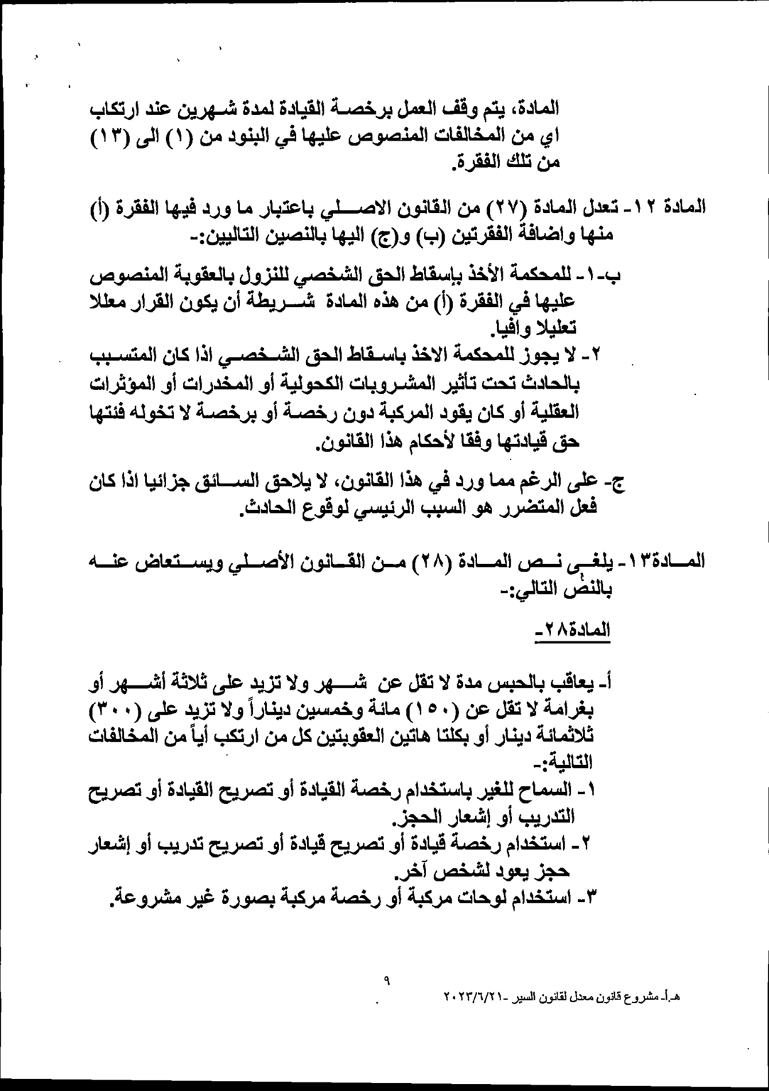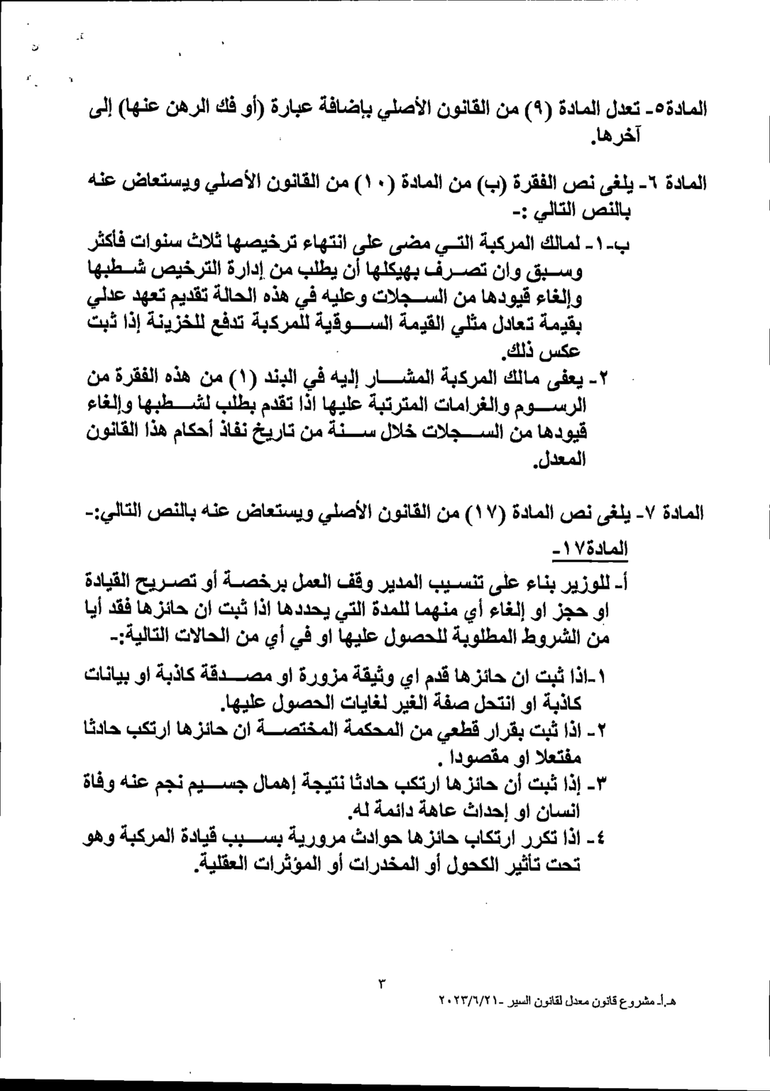 وكالة الناس – يشرع مجلس النواب بمناقشة القانون المعدل لقانون السير لسنة 2023 خلال الدورة الاستثنائية المقبلة والتي ستبدأ أعمالها يوم الأحد.