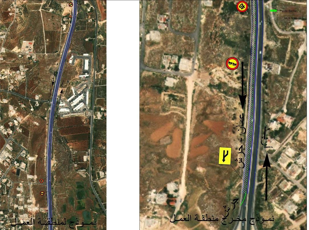 سيتم فصل الطريق المتجه من إربد الى عمان مسربين بواسطة حواجز بلاستيكية ومباشرة العمل في احد المسارب والابقاء على المسرب الاخر وبعرض (4) م مفتوح لحركة المرور.
