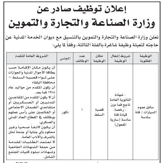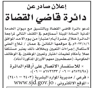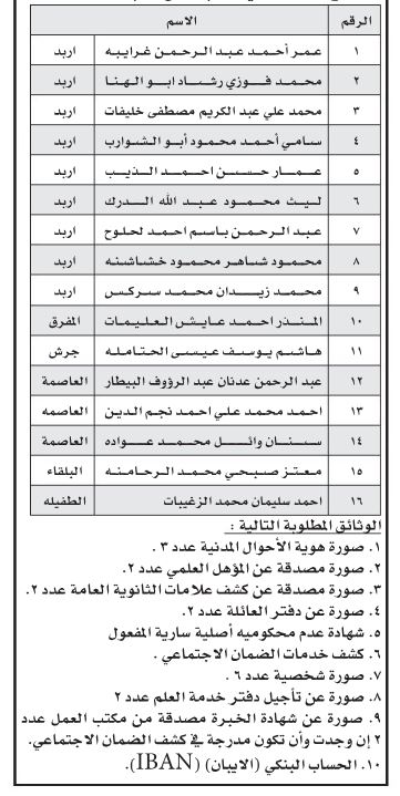 وكالة الناس – أعلنت عدداً من الوزارات والبلديات والمؤسسات الحكومية، اليوم الخميس، بالتنسيق مع ديوان الخدمة المدنية، عن حاجتهم لتعبئة وظائف شاغرة.