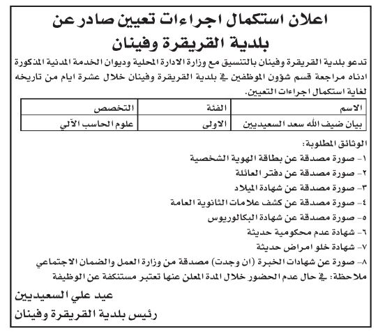 وظائف شاغرة ومدعوون لاستكمال إجراءات التعيين .. أسماء
