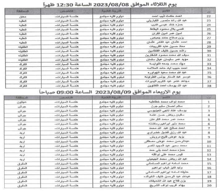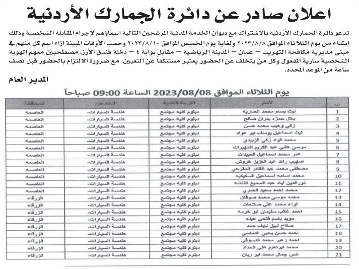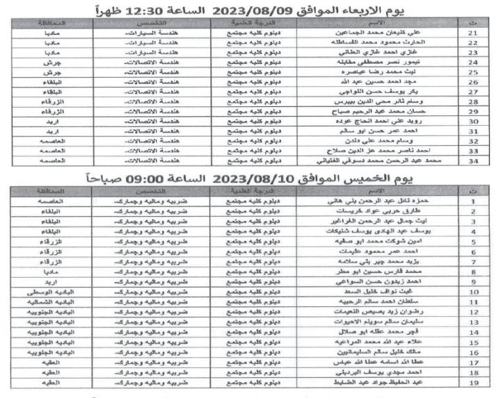 كما دعت عددا من المرشحين لإجراء المقابلات الشخصية وحضور الامتحان التنافسي واستكمال إجراءات التعيين.
