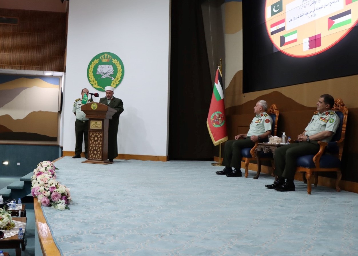 وألقى مفتي القوات المسلحة العقيد إمام حسن المخاترة كلمة قال فيها: إن كلية الدفاع الوطني تعد أنموذجاً لإنجازات بلدنا المبارك الذي يتمتع بمنهجية الوسطية والاعتدال والذي يعمل بكل طاقته لترسيخ الأمن والسلام محافظاً على صلابته العسكرية وهويته العربية الاسلامية.