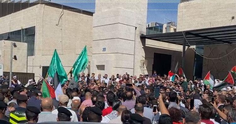 وكالة الناس – شارك مئات من الأردنيين في وقفة أمام مسجد الكالوتي قرب السفارة الاسرائيلية ظهر اليوم السبت، نصرة لعملية طوفان الاقصى التي تنفذها المقاومة الفلسطينية منذ صباح اليوم.