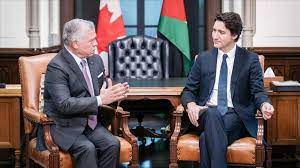 ولفت جلالة الملك إلى أهمية مواصلة التنسيق بين الأردن وكندا لتكثيف الجهود لدفع الجانبين لضبط النفس وحماية المدنيين واحترام القانون الدولي الإنساني.