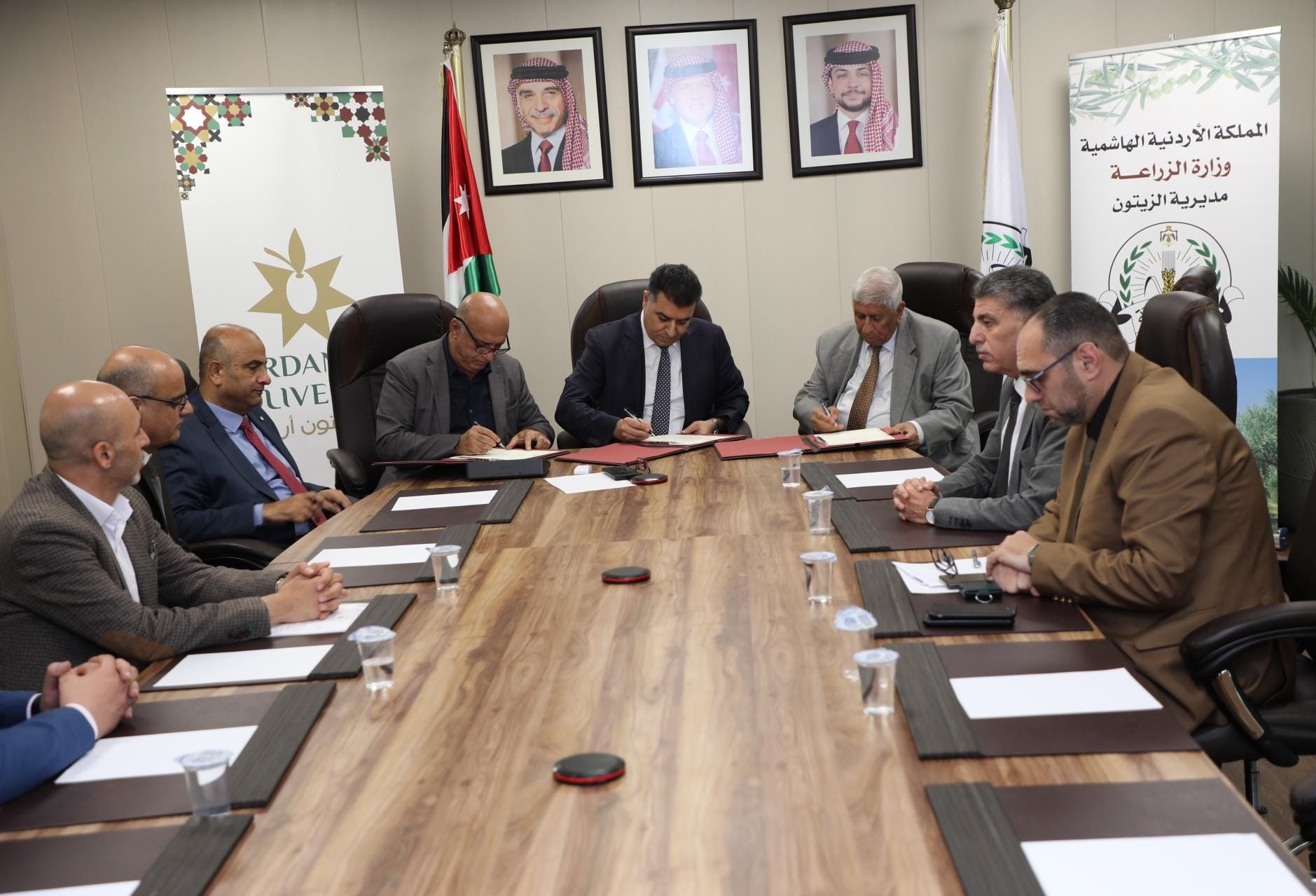 وكالة الناس – وقع وزير الزراعه المهندس خالد الحنيفات و نقيب النقابة العامة لإصحاب المعاصر ومنتجي الزيتون الاردنية  تيسير النجداوي و رئيس اتحاد عام المزارعين الأردنيين عودة الرواشدة ، وبحضور الأمين العام ، مذكرة تفاهم للحملة الوطنية التسويقية لزيت الزيتون الأردني، والتي من شأنها توفير مادة زيت الزيتون لجميع موظفي الدوله من القطاع الحكومي و القطاع الخاص.