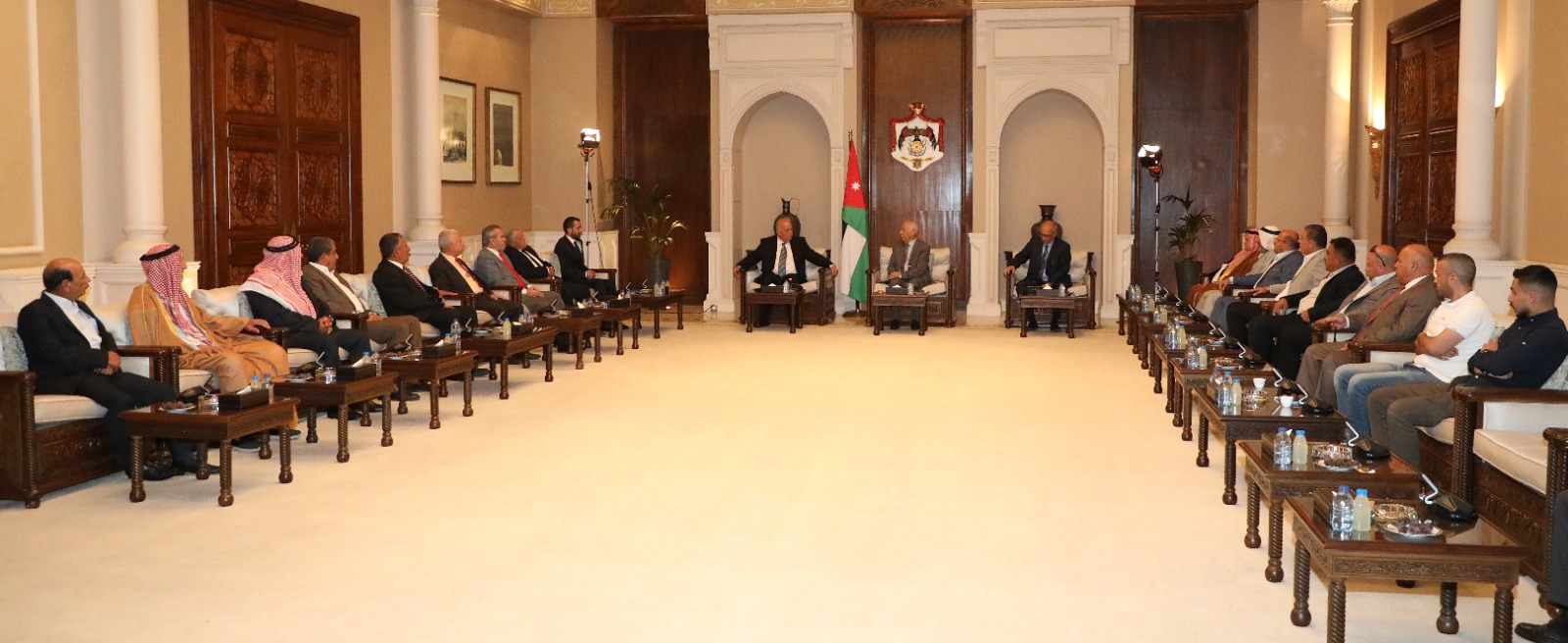 جاء ذلك خلال لقاء رئيس الديوان الملكي يوسف حسن العيسوي اليوم الثلاثاء مع وفد يمثل وجهاء وممثلين لواء الوسطية في محافظة إربد ومع وجهاء وممثلين عن البادية الشمالية برئاسة الشيخ هزاع العيسى، ولقائه ممثلين عن مؤسسة “شباب قادرون”،