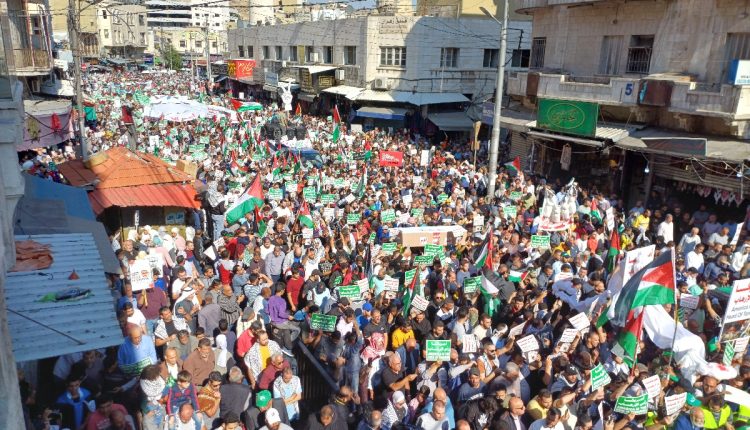 انطلقت بعد صلاة الجمعة اليوم من أمام المسجد الحسيني في وسط البلد، مسيرة شعبية وحزبية ونقابية حاشدة للتنديد بالعدوان الإسرائيلي الغاشم على أبناء الشعب الفلسطيني في غزة والضفة الغربية.