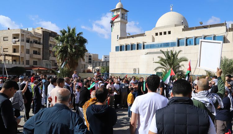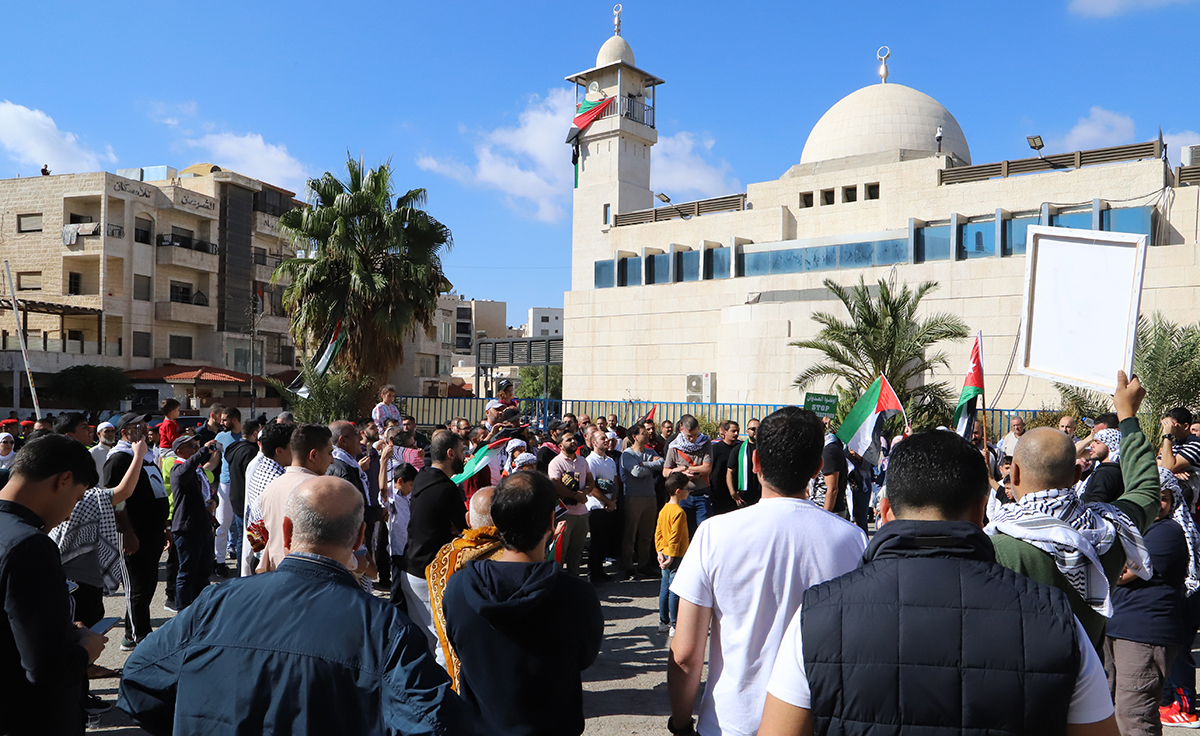 نفذت فعاليات شعبية وشبابية عقب صلاة ظهر اليوم الجمعة، وقفة تضامنية أمام مسجد الكالوتي في العاصمة عمان، نصرة للشعب الفلسطيني ضد العدوان الإسرائيلي الغاشم على قطاع غزة.