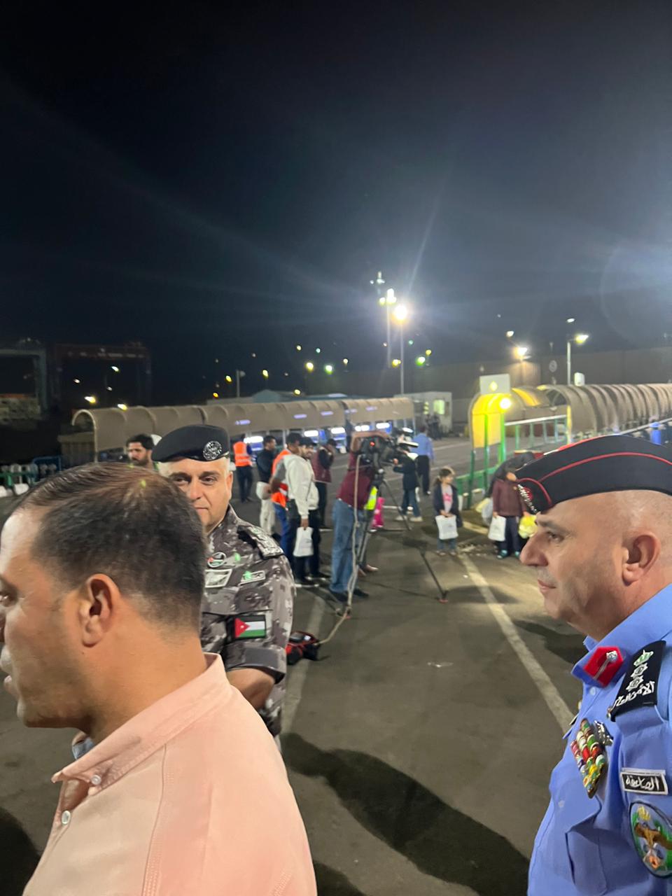 من جانبه أكد الفايز أننا في الأردن نلتحم بكل إمكانياتنا وبتوجيهات مباشرة جلالة الملك وسمو ولي العهد لدعم إخوتنا في غزة و خان يونس التي نالت منها آلة الحرب الإسرائيلية بما لا يمكن وصفه على شعب أعزل لا ذنب لهم ولا حيلة ، و نحن في هذا اليوم إذ نستقبل مجموعة من أهلنا الذين أحاطت بهم صواريخ العدوان الغاشم، فنحن على أهبة الاستعداد لتوفير ما يحتاجونه وبكل الإمكانيات، وسيتم نقلهم معززين ومكرمين، كلٌ إلى مناطق سكناهم في المملكة.