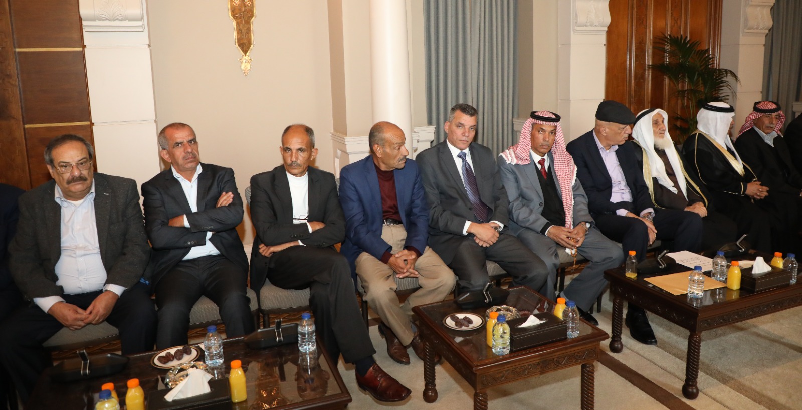 وفي بداية اللقاء، الذي حضره مستشار جلالة الملك لشؤون العشائر كنيعان البلوي ومدير عام دائرة الشؤون الفلسطينية المهندس رفيق خرفان، نقل العيسوي تحيات جلالة الملك لهم، واعتزاه بهم وبجميع الأردنيين.