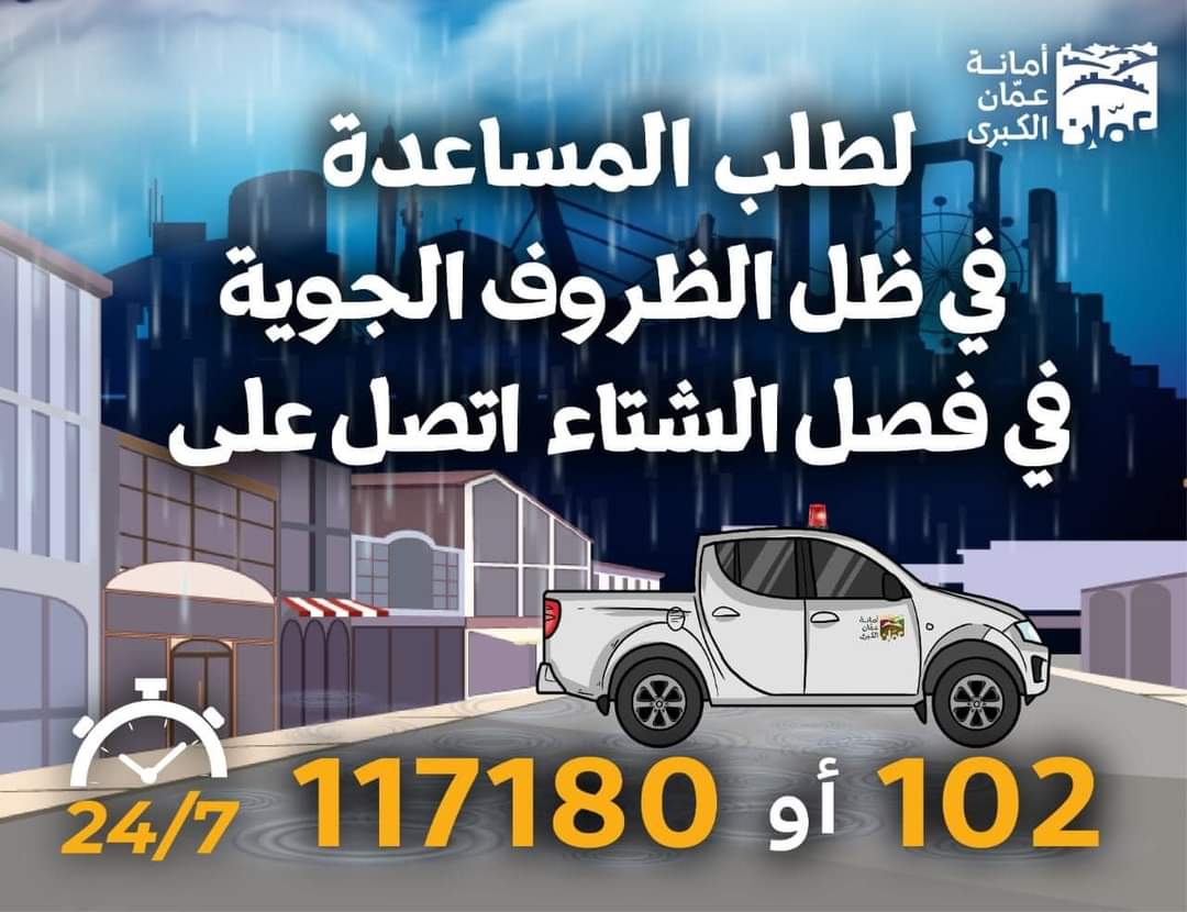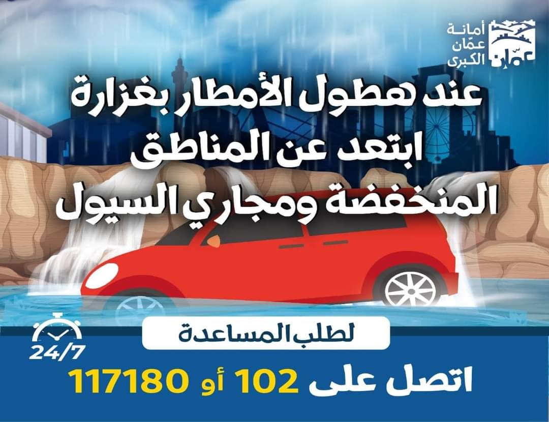 وكالة الناس –  نشرت أمانة عمان الكبرى اليوم الأحد، مجموعة من التحذيرات لأهالي مناطق العاصمة، تحسبًا لحدوث أي طارئ جراء المنخفض الجوي الذي يؤثر على المملكة غدًا الإثنين.