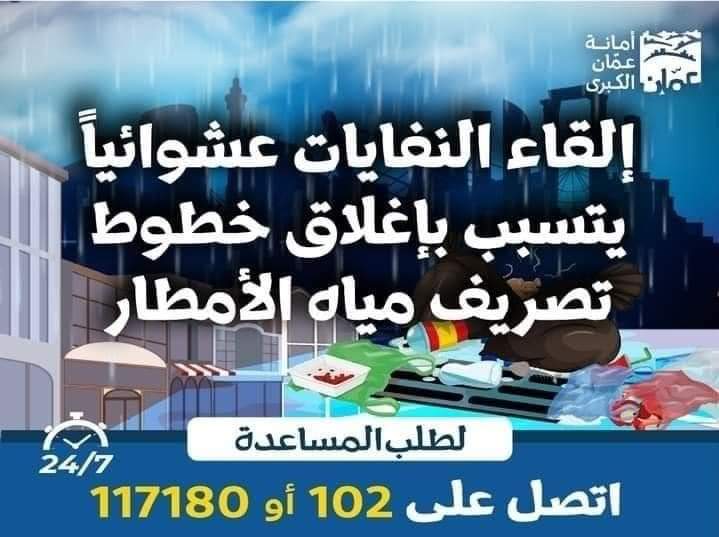 كما طالبت التجار باتخاذ إجراءات وقائية لحماية البضائع والمتاجر من مياه الامطار، وعدم القاء النفايات والانقاض عشوائيا لتجنب إغلاق شبكة تصريف مياه الأمطار.