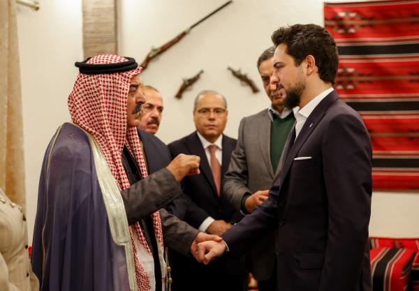 وكالة الناس — التقى سمو الأمير الحسين بن عبدالله الثاني، ولي العهد، اليوم الأربعاء، مجموعة من وجهاء قصبة المفرق بمنزل الشيخ خالد نواف العيطان، في منطقة رحاب بمحافظة المفرق.