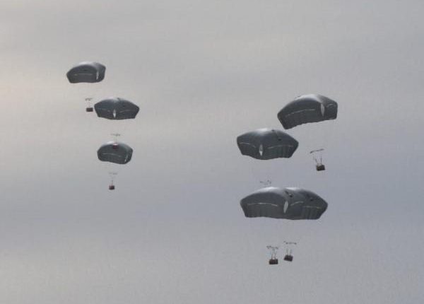 وعلى طول المناطق الغربية لوسط وجنوب قطاع غزة، شوهدت عملية الإنزال الجوي التي قامت بها القوات المسلحة الأردنية-الجيش العربي، لصناديق المساعدات الإنسانية ليستقبلها الغزيون الذين يعانون جراء القصف ومنع الإمدادات من قبل الاحتلال.