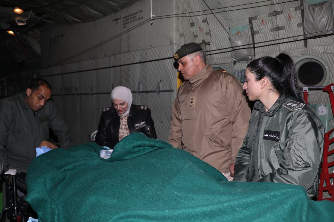 وبين قائد طبابة سلاح الجو الملكي، أنه تم إخلاء مواطن أردني يعمل في المملكة العربية السعودية عبر طائرة عسكرية مزودة بفريق طبي متخصص، مضيفاً أن الحالة العامة للمصاب حرجة.