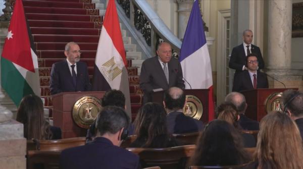 وشدد الصفدي خلال مؤتمر صحفي مشترك مع وزير خارجية مصر سامح شكري، ووزير خارجية فرنسا ستيفان سيغورنيه، على ضرورة فتح جميع المعابر لإدخال المساعدات للقطاع .