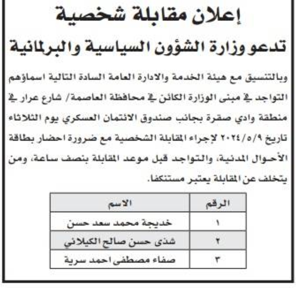 مدعوون للتعيين ووظائف شاغرة في وزارات ومؤسسات حكومية – اسماء