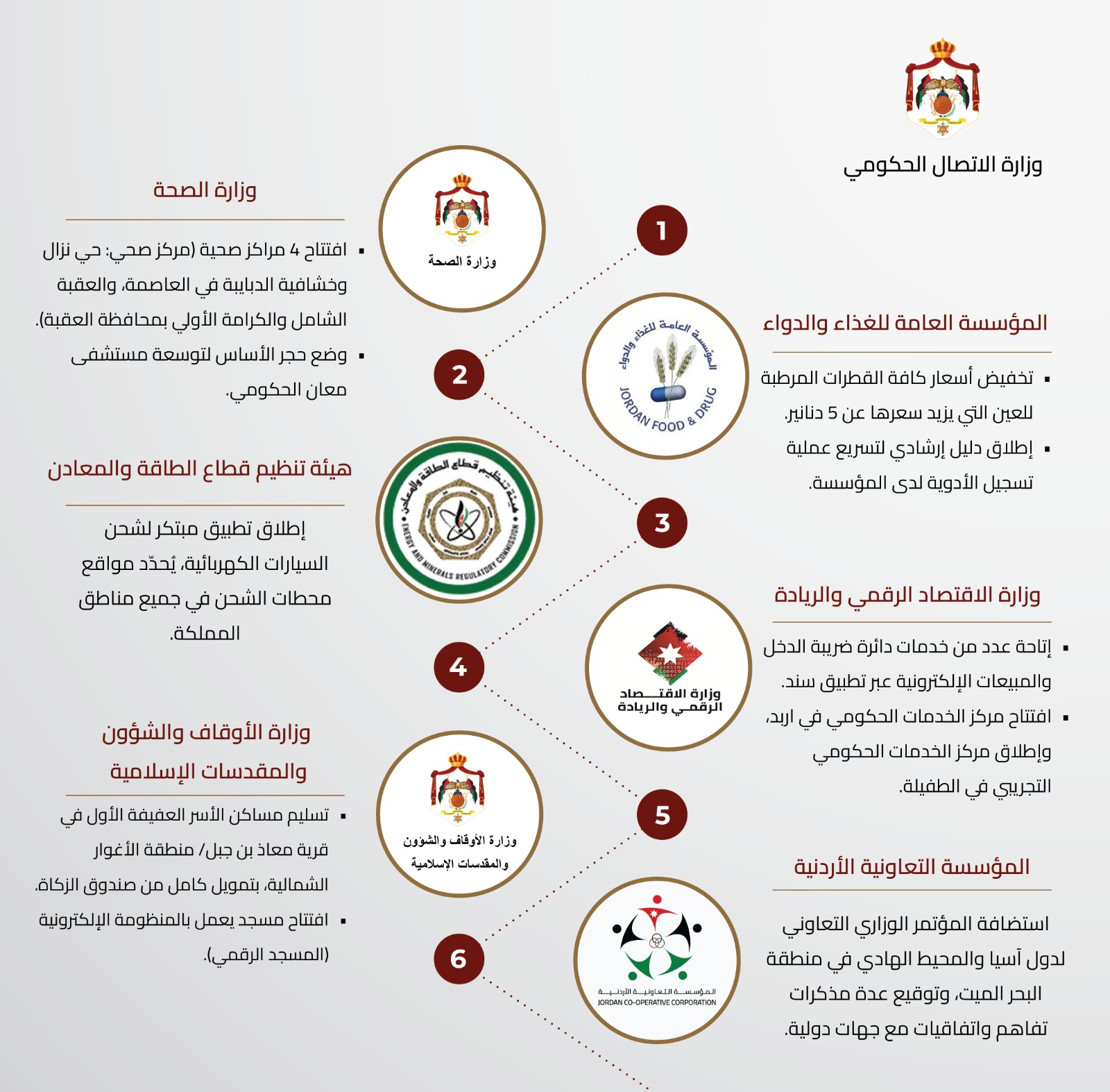 وكالة الناس -نشرت وزارة الاتصال الحكومي عبر صفحتها على موقع اكس (تويتر سابقا) موجز إنجازات الوزارات والمؤسسات الحكومية لشهري نيسان وأيار 2024.