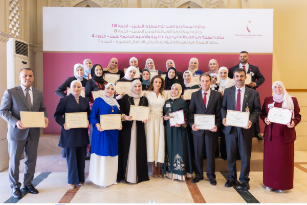 كما تمّ الإعلان عن رياض الأطفال الحاصلة على “جائزة الملكة رانيا العبدالله لـرياض الأطفال المتميّزة”، حيث حصلت على الجائزة روضة مدرسة حي الملك عبدالله الاساسية المختلطة من مديرية قصبة المفرق، وروضة رقية بنت الرسول من مديرية لواء ماركا، وروضة مدرسة امرع الثانوية المختلطة من مديرية القصر.
