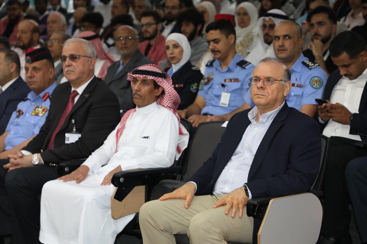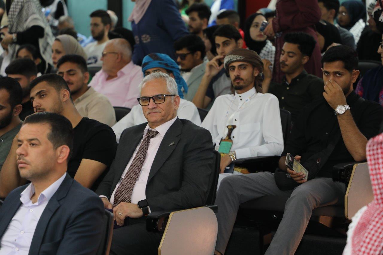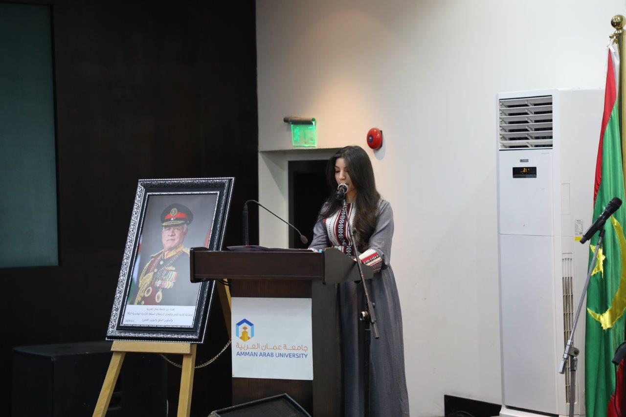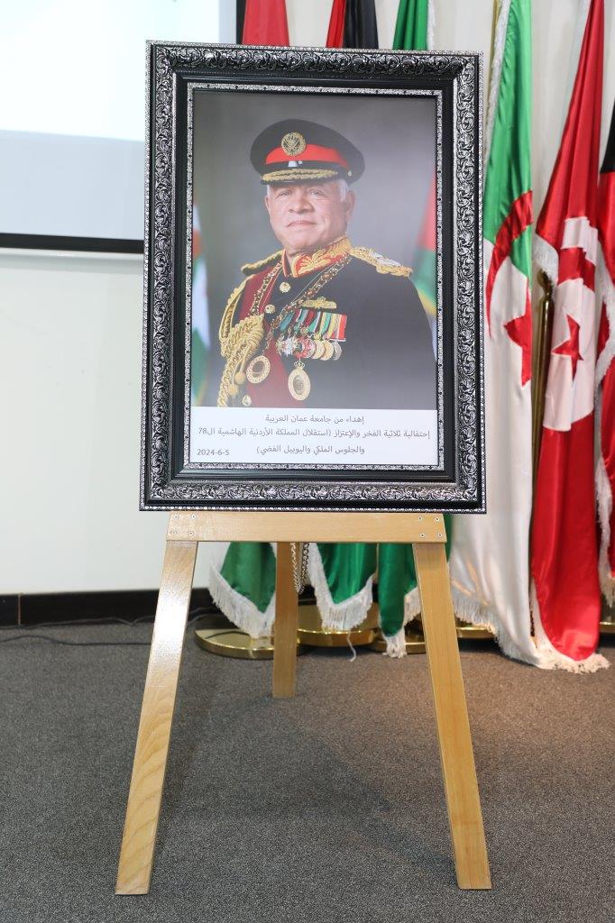 بدوره قال الدكتور الوديان خلال كلمته بأننا اليوم في جامعة عمان العربية نحتفل بعيد الاستقلال 78 الذي يصادف الخامس والعشرين من أيار، ونستذكر فيه إعلان المملكة الأردنية الهاشمية دولةً مستقلةً استقلالاً ، ومنذ ذلك الحين والهاشميون الأشراف يحملون راية الحكم جيلاً بعد جيل قادوا مسيرتها بحكمةٍ واقتدار، وقدموا التضحيات ومن خلفهم الأردنيون الأحرار ليكون الأردنُّ دولةً حرةً مستقلة يكتمل بنيانها ويترسخ كيانها ، بالإضافة إلى الاحتفال باليوبيل الفضي لتسلم جلالة الملك عبدالله الثاني سلطاته الدستورية الذي هلّ علينا متزامناً مع ذكرى الاستقلال، فعلى مدى الخمسة والعشرين عاماً وجلالته يتولى مقاليد الحكم متابعاً مسيرة البناء والتطوير التي بدأها المغفور له جلالة الملك الحسين بن طلال طيب الله ثراه، فقد شهد الأردن خلالها تحولات جذرية على مستوى جميع الأصعدة سياسياً واقتصادياً واجتماعياً، وتميزت تلك المرحلة بإصلاحاتٍ جوهرية وتطورات ملموسة في مختلف القطاعات من التعليم والصحة الى الدبلوماسية وغيرها تظهر بدورها رؤية جلالة الملك الشاملة وترجمتها لنهضةٍ شاملة وتعزيز مكانة الأردن وصموده كقوة للاستقرار والتقدم في وسط إقليمي ودولي يعجُ بالتحديات ساعياً جلالته لتحقيق آمال الأمة وتعزيز عروبتها منطلقاً من ثوابته متبنياً قضاياه المصيرية ولا سيما القضية الفلسطينية ساعياً لحلها حلاً شاملاً عادلاً وإقامة دولة فلسطين المستقلة على التراب الوطني الفلسطيني وعاصمتها القدس الشرقية، ومحافظاُ على الوصاية الهاشمية على المقدسات الإسلامية والمسيحية فيها.