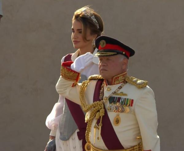واصطف حرس الشرف في الميدان الرئيسي لتحية جلالة الملك، فيما عزف السلام الملكي بعد دخول جلالة الملك عبدالله وجلالة الملكة رانيا العبدالله.