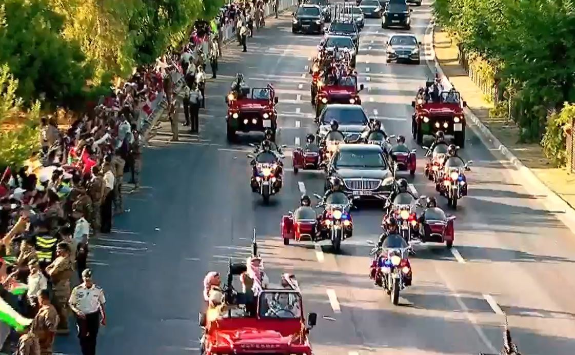 وكان جلالته قد وصل موقع الحفل مستقلا الموكب الأحمر الذي اخترق شارع الملك عبدالله “المدينة الطبية”.