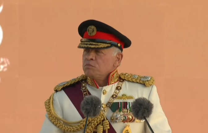 وقال جلالته، إنّ 25 عامًا مرت على توليه أمانة هذا الوطن، يرى فيها رجالًا ونساءً وشبابًا، بهامات مرفوعة وقيم أصيلة، يرى فيهم شجاعة جند على الحدود يحمون أمًا واطفالها للوصول إلى بر الأمان، ومساندة طبيب لم يتردد بالعمل تحت القصف ووسط المعارك لإنقاذ إخوته.