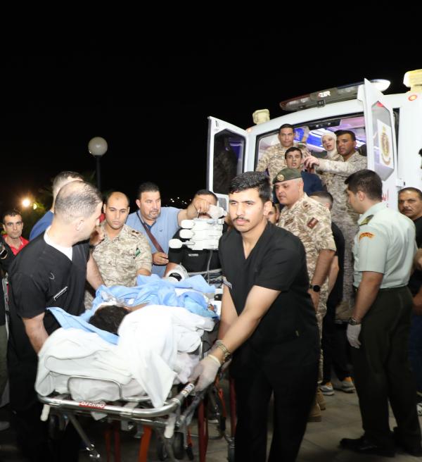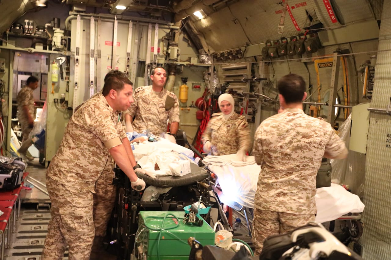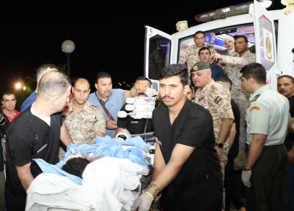 وبيّن قائد طبابة سلاح الجو الملكي أنه تم إخلاء 5 أفراد من عائلة أردنية عبر طائرة مزودة بطاقم طبي متخصص، مضيفاً أن حالة اثنين من المصابين حرجة، فيما تبين أن الحالة العامة للثلاثة الآخرين متوسطة.