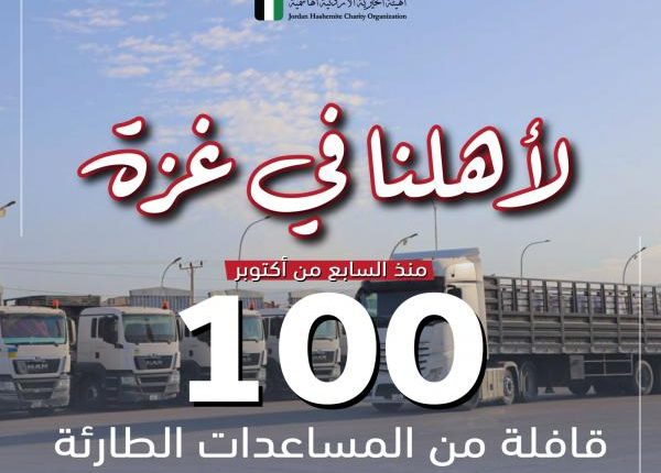 وصول القافلة الأردنية رقم 100 إلى غزة