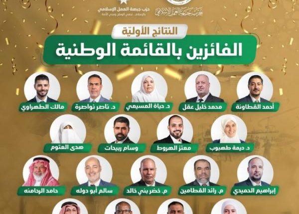 وكالة الناس – أعلن حزب جبهة العمل الإسلامي فوز قائمته المرشحة للانتخابات النيابية 2024 في الدائرة العامة بـ 18 مقعدا وفق النتائج الأولية وبعد فرز 99% من الأصوات، وحصولها على 462 ألف صوت.