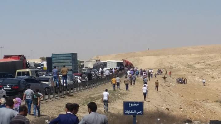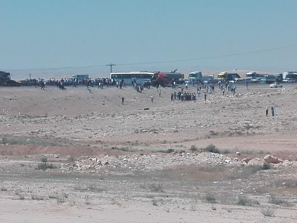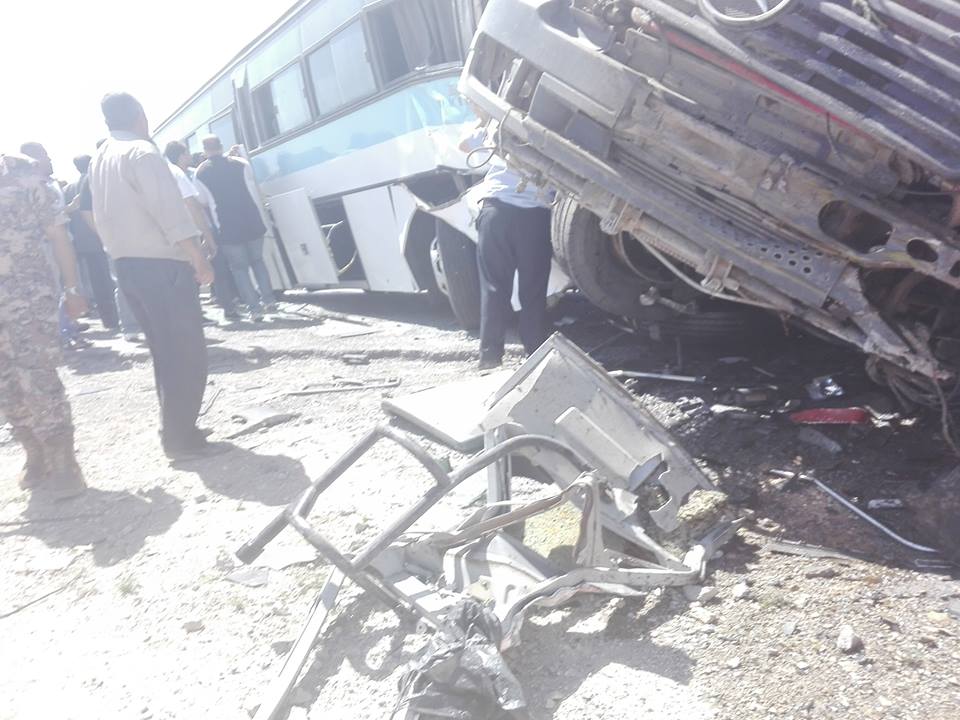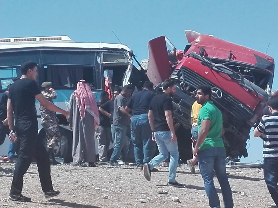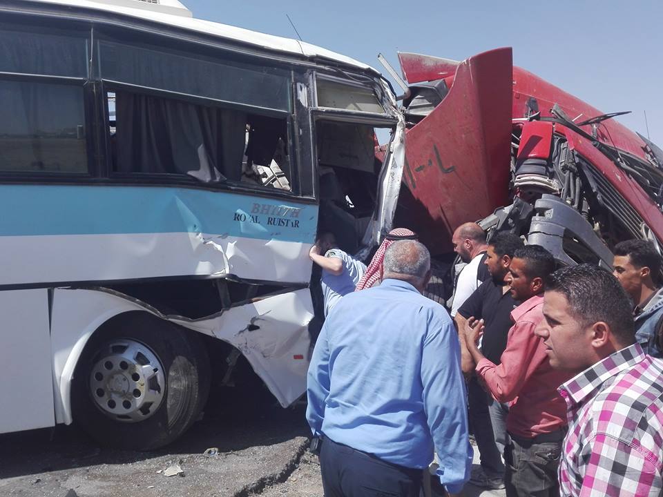 وكالة الناس – اصيب 3 اشخاص على الاقل بجروح خطيرة بحادث تصادم وقع على طريق اوتستراد المفرق – الزرقاء بين شاحنة كبيرة و حافلتين اليوم ، وفق ما اكده شهود عيان .