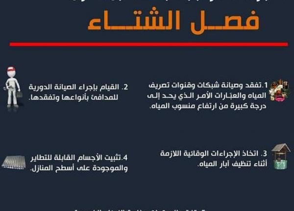1- تفقد وصيانة شبكات وقنوات تصريف المياه والعبارات، الأمر الذي يحد إلى درجة كبيرة من ارتفاع منسوب المياه.