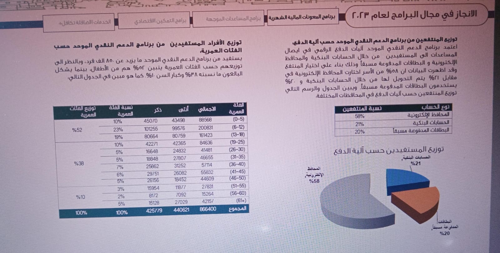 وقال إن البيانات الواردة في التقرير الاحصائي السنوي لصندوق المعونة الوطنية لعام 2023، تكشف أن 34% من طالبي المعونة ذكورا وإناثا هم من فئة الشباب بين 13 -30 عاما.