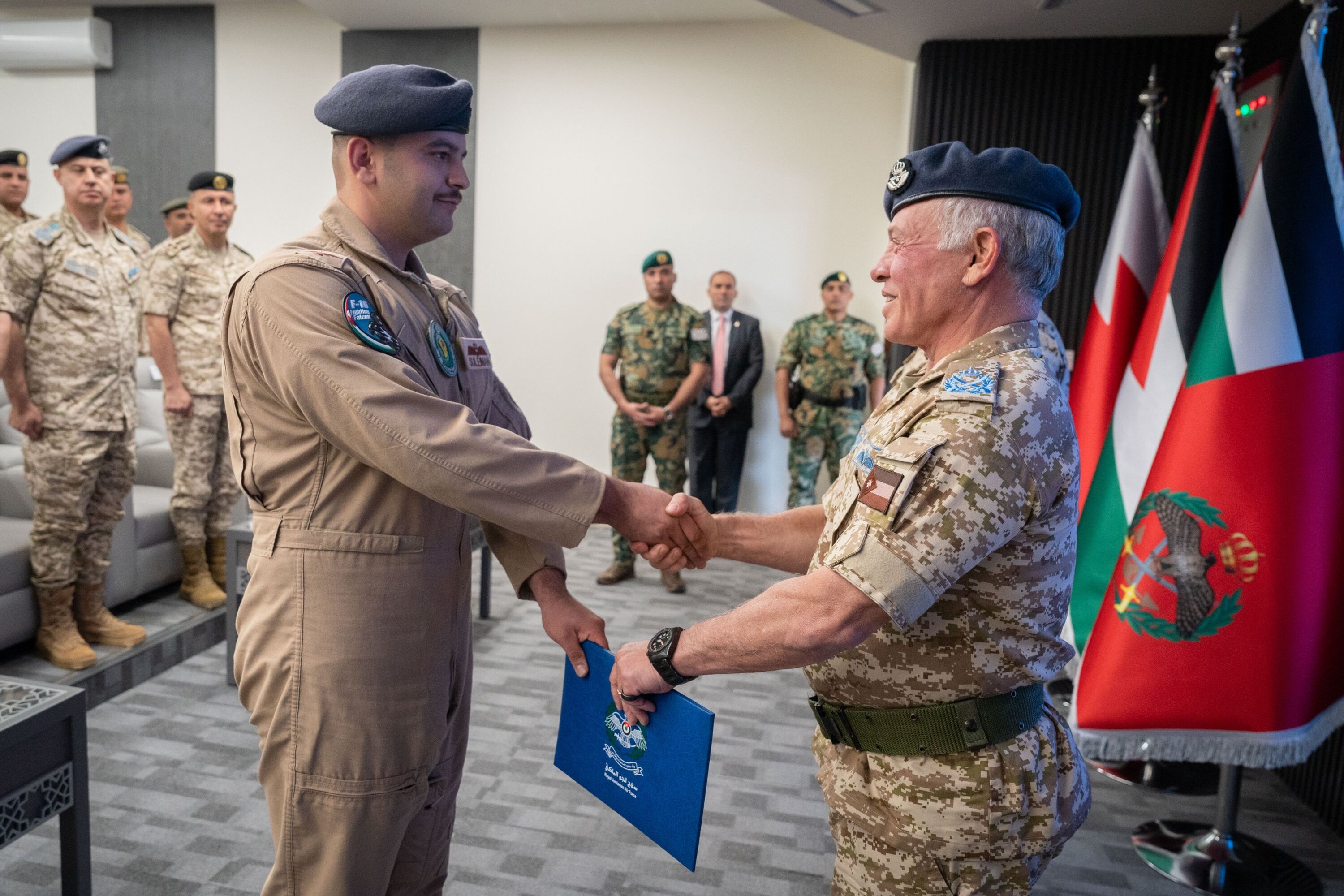 ورعى جلالة القائد الأعلى تخريج الدورة التحويلية للطيران القتالي/26، والتي شارك فيها طيارون من سلاح الجو الملكي الأردني ومن مملكة البحرين الشقيقة، بحضور قائد جناح المقاتلات في سلاح الجو الملكي البحريني، والملحق العسكري البحريني في الأردن.