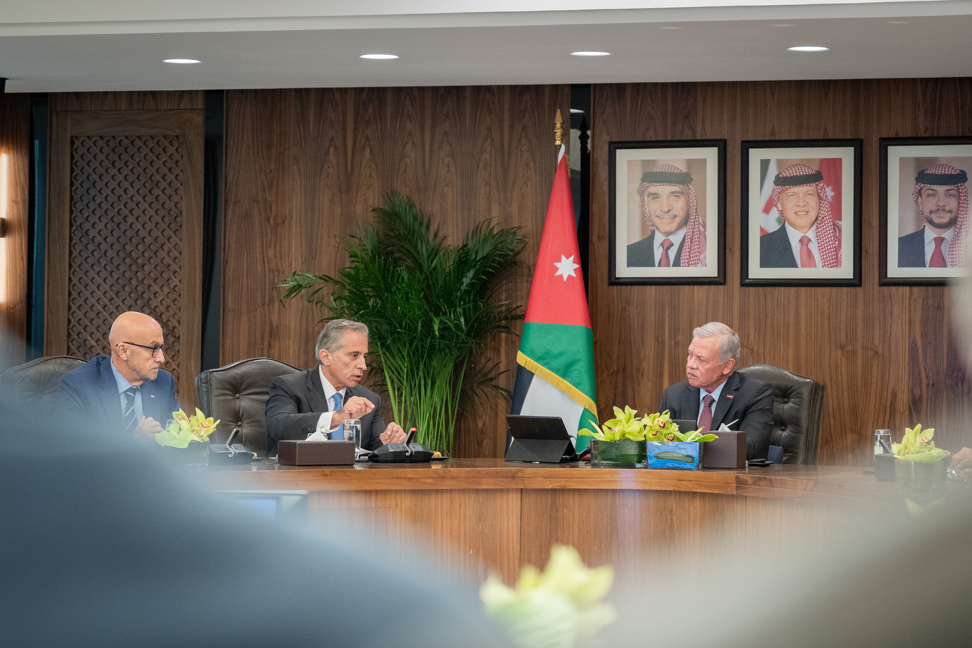 ورافق جلالة الملك، رئيس الديوان الملكي الهاشمي يوسف حسن العيسوي، ومدير مكتب جلالة الملك، المهندس علاء البطاينة.