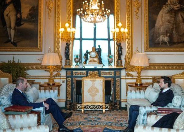 وكالة الناس -التقى سمو الأمير الحسين بن عبدالله الثاني، ولي العهد، اليوم الإثنين بقصر ويندسور في المملكة المتحدة، الأمير وليام، أمير ويلز.