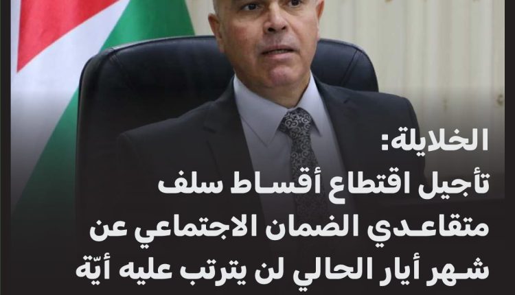 الخلايلة: تأجيل اقتطاع أقساط سلف متقاعدي الضمان عن شهر أيار الحالي لن يترتب عليه أيّة فوائد إضافية
