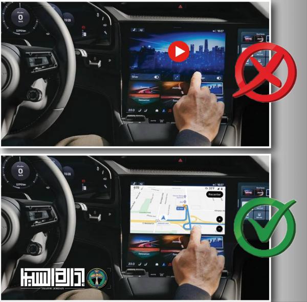 وقالت إدارة السير في منشور عبر فيسبوك، إن القانون يعاقب على استخدام الشاشات من قبل ركاب المقاعد الامامية لغايات عرض مواد فيلمية او فيديوهات ترفيهية، لما يتسبب به من تشتيت انتباه السائق وفقدان تركيزه على الطريق.