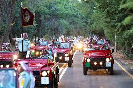 وكانت بدايات الموكب تُرافقها خيول بيضاء وفرسان، قبل أن تُستبدل بالدراجات النارية.