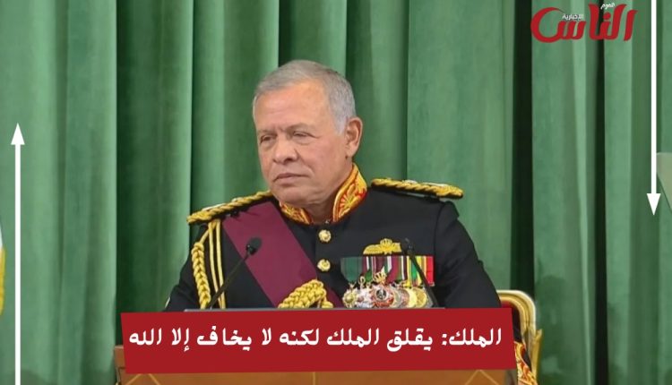 وتابع: “أخاطبكم وأخاطب من خلال مجلسكم الكريم، الأردنيين والأردنيات، شعبي القريب مني، سند الأردن وذخره، يتساءل بعضكم كيف يشعر الملك؟ أيقلق الملك؟ نعم، يقلق الملك، لكن لا يخاف إلا الله. ولا يهاب شيئا وفي ظهره “أردني”. فهذا، والحمد لله، هو أثمن ما يشتد به القائد” .