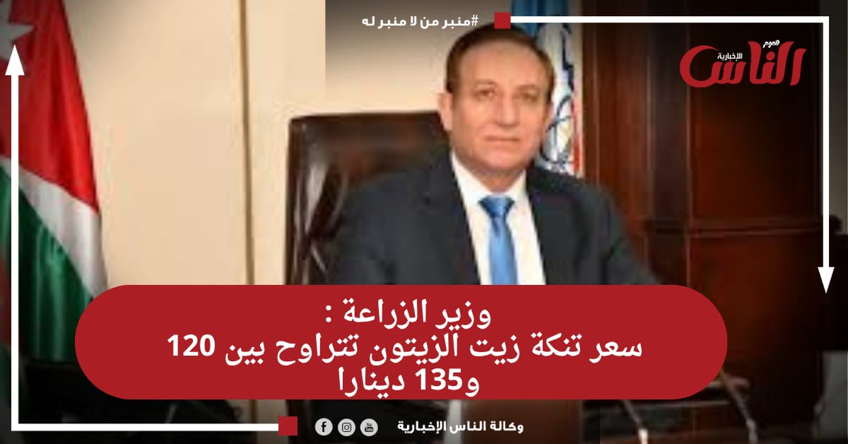 ولفت خريسات إلى أن أسعار تنكات زيت الزيتون تتراوح بين 120 و135 دينارا، حسب الموقع، مشيرا إلى أن هذه الأسعار أعلى من المتوقع، حيث كان من المفترض أن تتراوح أسعار العبوة 16 كيلوغراما بين 100 و110 دنانير في أقصى الحالات.