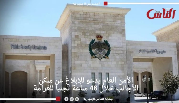 وكالة الناس -دعت مديرية الأمن العام، ممثلة بإدارة الإقامة والحدود، المواطنين إلى الالتزام بالإبلاغ عن إقامة أو مغادرة أي أجنبي لديهم خلال 48 ساعة من وقت حلوله أو مغادرته، تجنبا لتعرضهم للغرامة المقررة والبالغة 200 دينار، وفقا للتعديلات الأخيرة على قانون الإقامة وشؤون الأجانب.