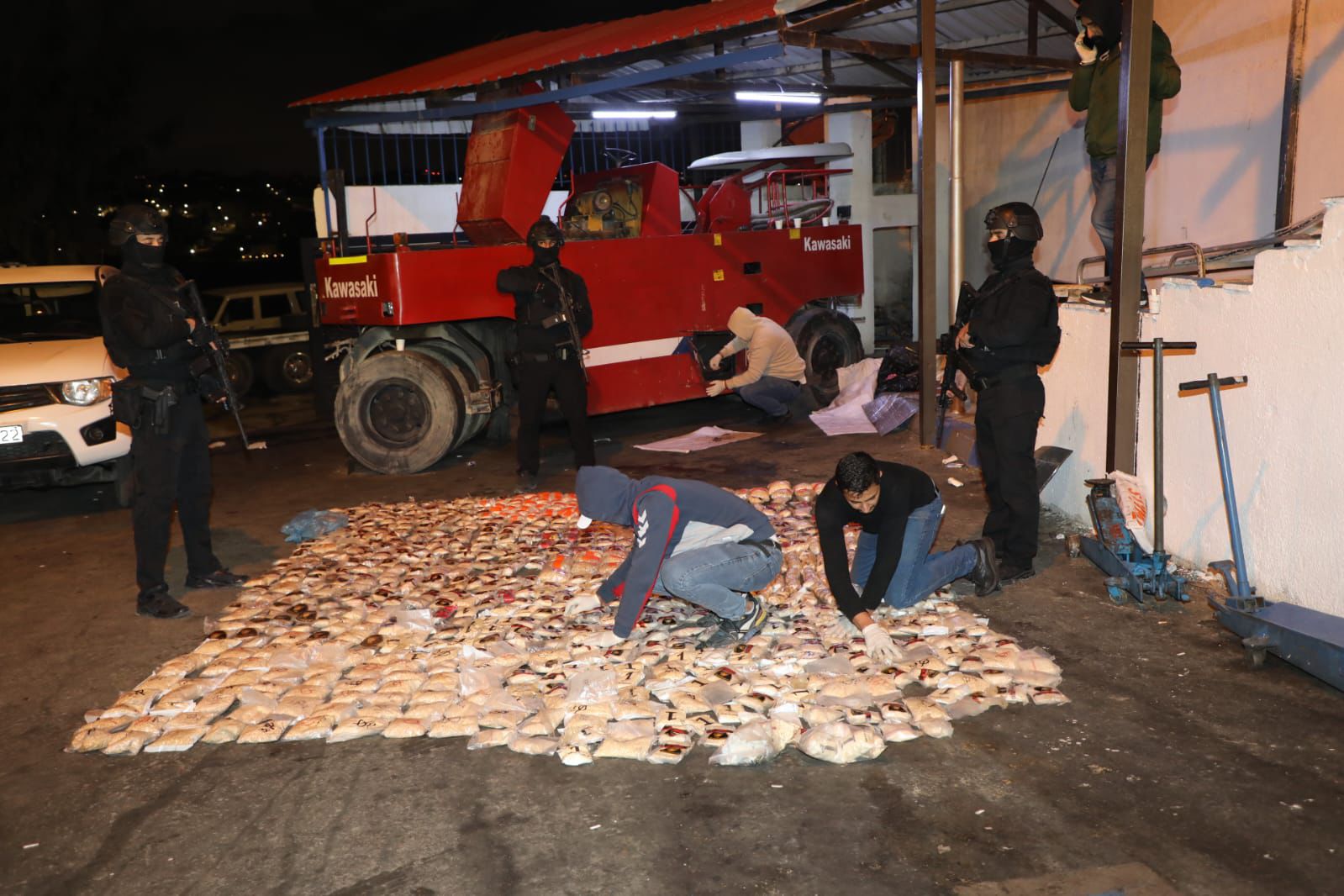 وتابع أنه من خلال التحقيقات وعمليات المراقبة تبيّن قيام المشتبه بهم بشراء آلية ثقيلة (مدحلة) ونقلها لأحد المستودعات في لواء الرصيفة ومباشرة نقل كمّيات من المواد المخدرة على مراحل لداخل المستودع .