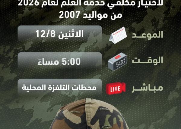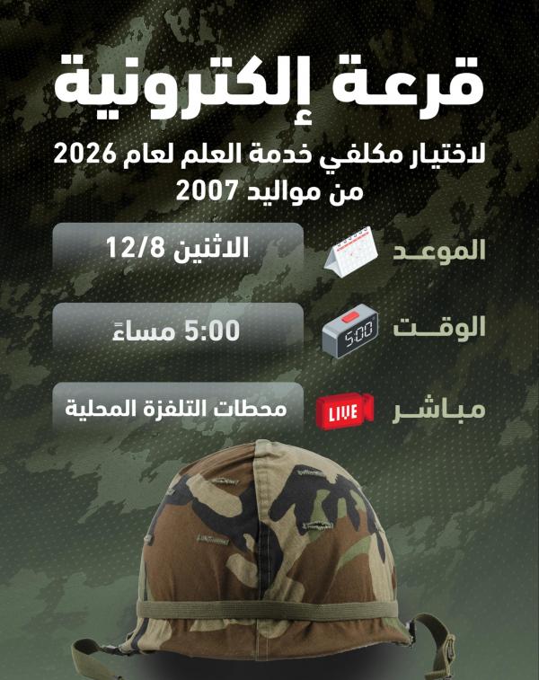 وأضاف، أنه يمكن للشباب من مواليد 2007 وذويهم متابعة التفاصيل والتعليمات التي ستُنشر عبر القنوات الرسمية؛ حيث سيتم الإعلان عن المنصة الرسمية الخاصة ببرنامج خدمة العلم وآلية التحقق من شمولهم بالخدمة بعد انتهاء القرعة الإلكترونية مباشرة.