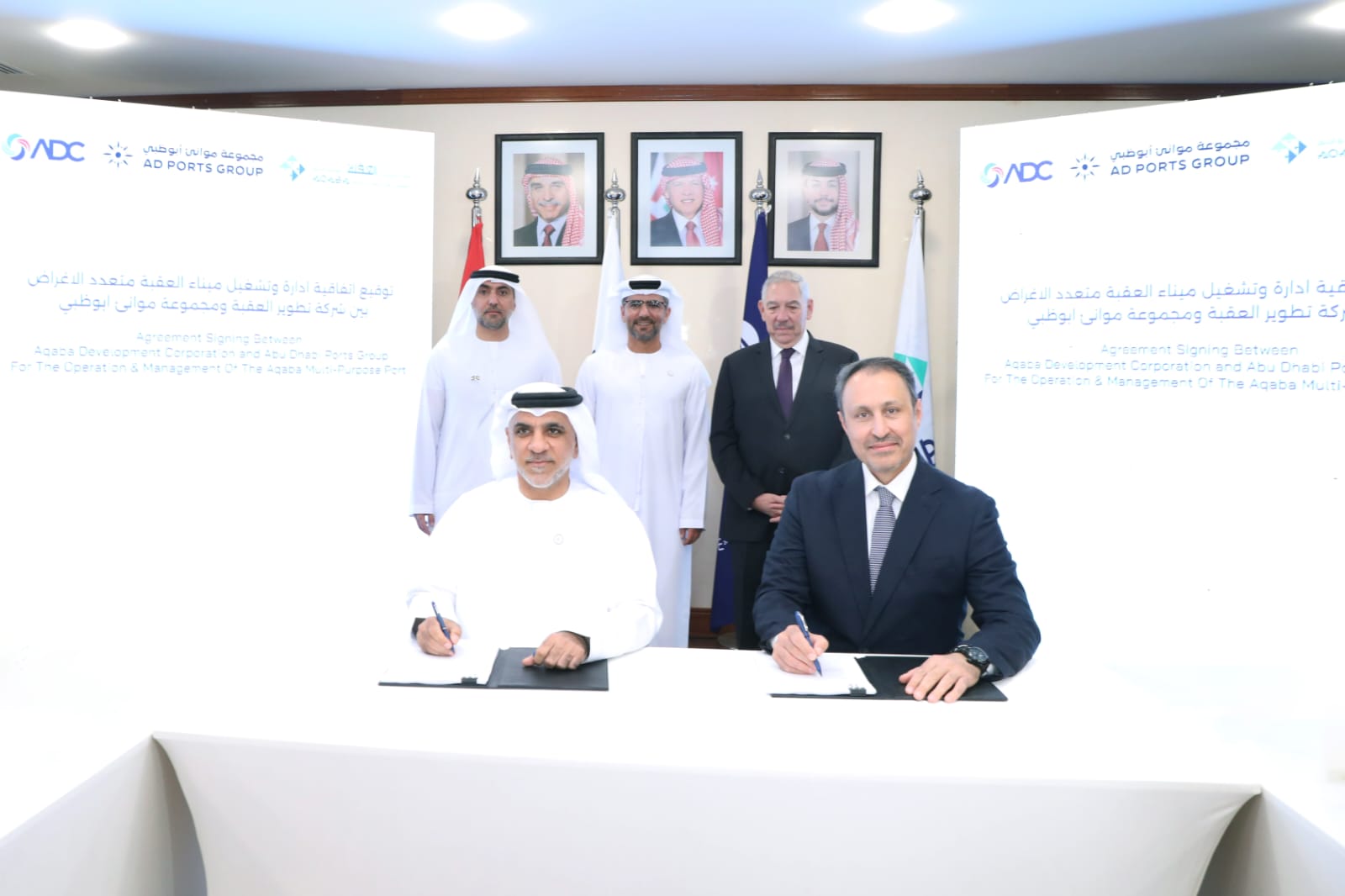 وشهد توقيع الاتفاقيَّة رئيس مجلس مفوضي سلطة منطقة العقبة الاقتصادية الخاصة “شادي رمزي” المجالي والعضو المنتدب الرئيس التنفيذي لمجموعة موانيء أبو ظبي الكابتن محمد جمعة الشامسي حيث وقَّعها عن شركة تطوير العقبة الرَّئيس التَّنفيذي حسين الصَّفدي، وعن مجموعة موانئ أبو ظبي احمد المطوع الرئيس التنفيذي الإقليمي لمجموعة موانيء أبو ظبي